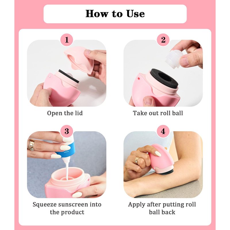 - Easy To Use and Very Comfortable : This sunscreen roller applicator is engineered for simplicity, making it easy for kids to use. Fill it with your chosen sunscreen, shake, and apply. The roller ball ensures even distribution, while the sponge aids in smooth application. Features include being BPA-free and having coating for safe use.