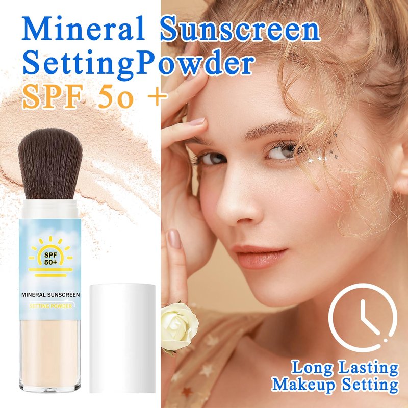 Sunscreen Setting Powder SPF 50+ PA++++,Oil Control Brush On Powder Sunscreen Makeup,Breathable Long Lasting Mineral Loose Powder,Lightweight Flawless Concealer for All Skin Types