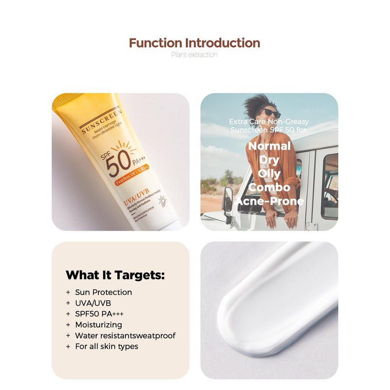 Sunscreen SPF 50, Hydrate Moisturizing Body Sunscreen Lotion, UVA/UVB Protection Free Oil Free Sunscreen Lotion Face & Body Sun Screen