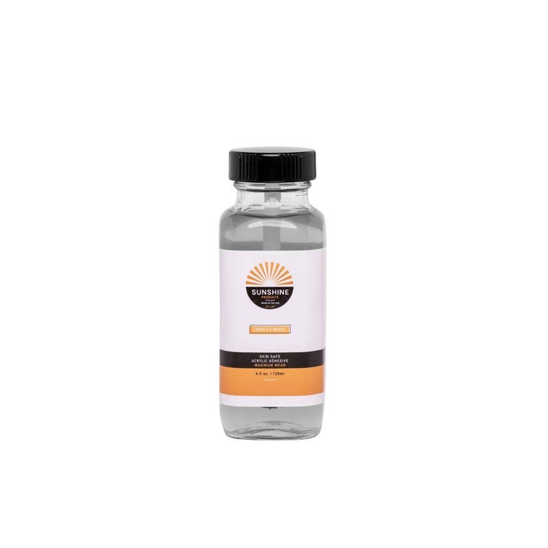 Sunshine Skin Safe Maximum Wear Acrylic Adhesive is a clear extended-wear adhesive that provides a secure bond for up to four weeks, depending on body chemistry. Favored by users, it is one of the strongest skin-safe acrylic adhesives available for use on lace bases, skin bases, and poly perimeters on lace or monofilament bases. 4-ounce brush-on.