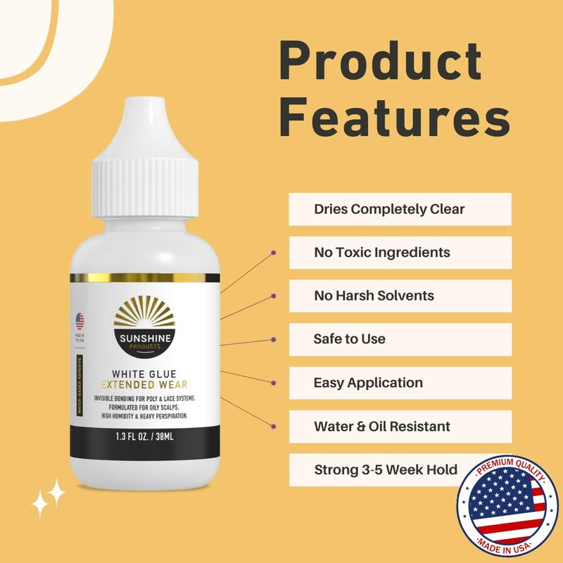 - DURABLE HOLD: Our industry leading Sunshine extended wear white glue is formulated to withstand the wear and tear of daily life for up to 3-5 weeks