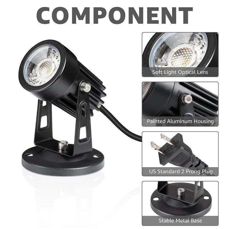 - 【Easy Installation】Variable choices. Comes with mounting base and stake, our led spotlight can be mounted on the wall/ceiling, or it can be inserted into the ground using the stake.