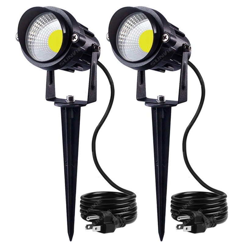 SUNVIE Outdoor Landscape LED Lighting 12W Waterproof Graden Lights COB Led Spotlights with Spiked Stand for Lawn Decorative Lamp US 3- Plug 6500K Daylight White (2 Packs)