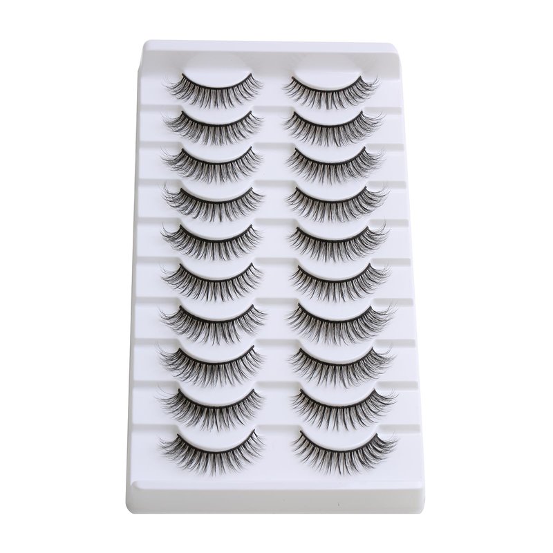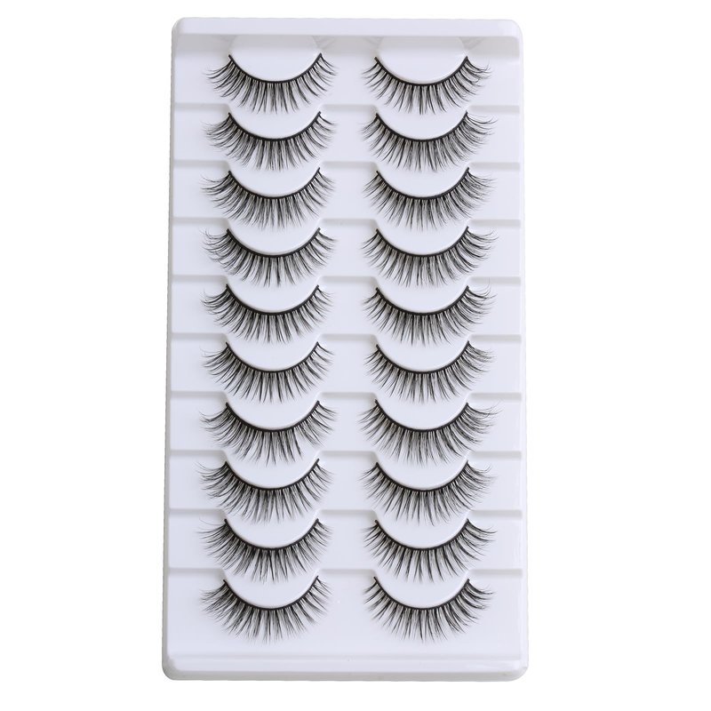 False Eyelashes 10mm Mink Lashes Natural Look Cat Eye Lashes Strips 3D Faux Mink Lashes Soft Reusable Light Volume Fake Lashes 10 Pairs Pack