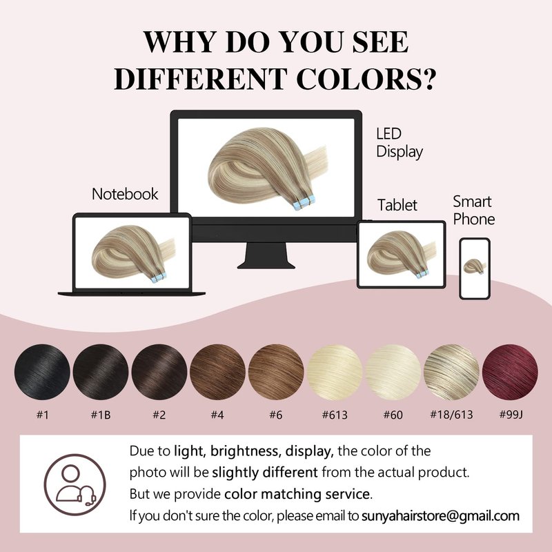 - Quality Hair Extensions: Our tape in hair extensions is remy human hair, less tangle and less shedding. Our tape in hair extensions human hair can be washed, curled, straightened, and dyed.The hair is soft with invisible strong blue tape and with a nice gift box.