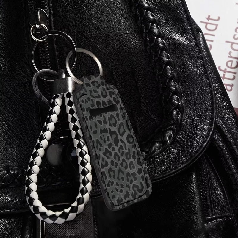 Suobstales Black Leopard Chapstick Holder Keychain Neoprene Lip Balm Holder Wild Animal Cheetah Skin Print Lipstick Sleeve Pouch Lip Balm Portable Pocket Lip Gloss Tube Holder Travel Accessories