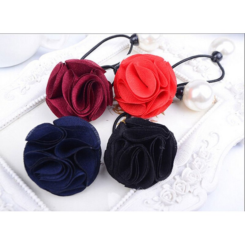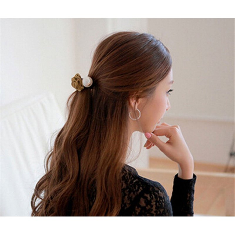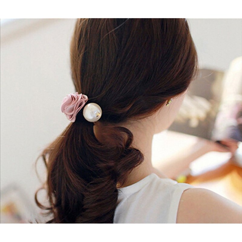 Suoirblss 5 PCS Hair Accessories Women Satin Ribbon Rose Flower Imitation Pearl Ponytail Hair band (Color random)