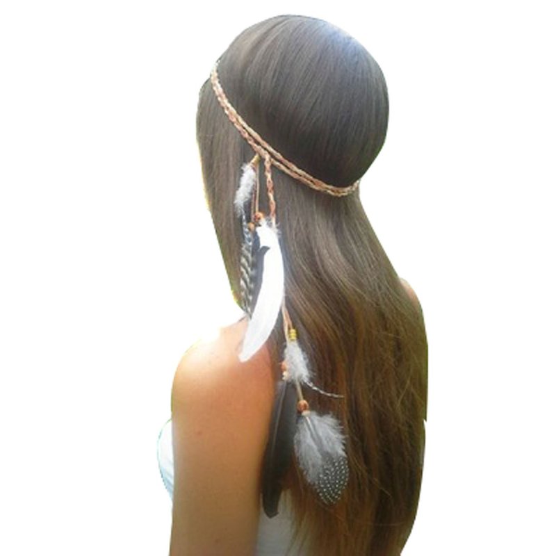 Suoirblss Women Lady BOHO Peacock Feather Hairdressing Hair Band Head Band Folk Style Indian Handmade Headband Hair Hoop Headpiece Headwear Accessory