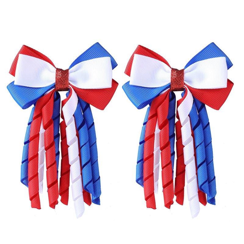 - Eye-Catching Design: SUPCLIPS novelty curly ribbon hair bows embellish your pigtails, funny and distinctive, make you more cute and charming, Independence Day classic red white bue colors, adding to the 4th of July atmosphere.