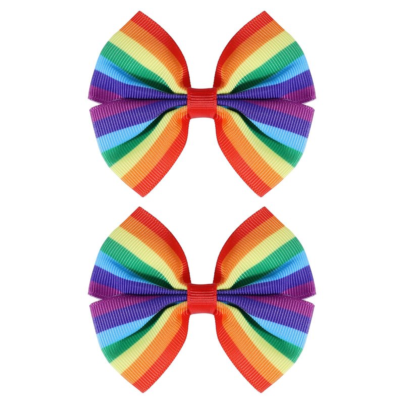 SUPCLIPS Rainbow Hair Bow Clips Boutique Grosgrain Hair Clips Women Gilrs Hair Accessories for Pride Month & Daily Wear