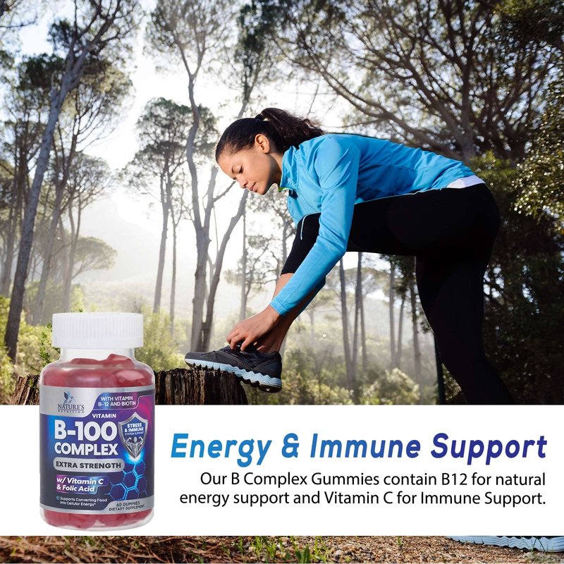 Super B Complex Gummies with Vitamin C & Folic Acid, Extra Strength Vitamin B Gummy Supplement with Niacin, B6, Folic Acid, B12, Biotin, Nature's Energy Immune Support Supplements - 60 Gummies