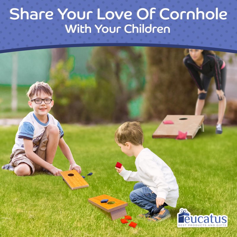 - SHARE YOUR LOVE OF CORNHOLE WITH YOUR CHILDREN. Set these miniature boards up next to you out on the deck during your next party. They'll love feeling like a big boy or girl with these tiny boards AND won't interfere with your game. A simple and fun way to pass on your favorite leisure activity until they are old enough for a full size board.