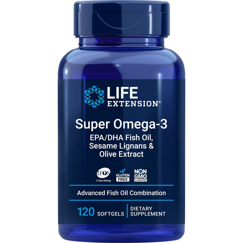 Super Omega-3 EPA/DHA Fish Oil, Sesame Lignans & Olive Extract - For Heart & Brain Health – For Inflammation & Cholesterol Management – Gluten-Free, Non-GMO – Lemon Flavor 120 Softgels
