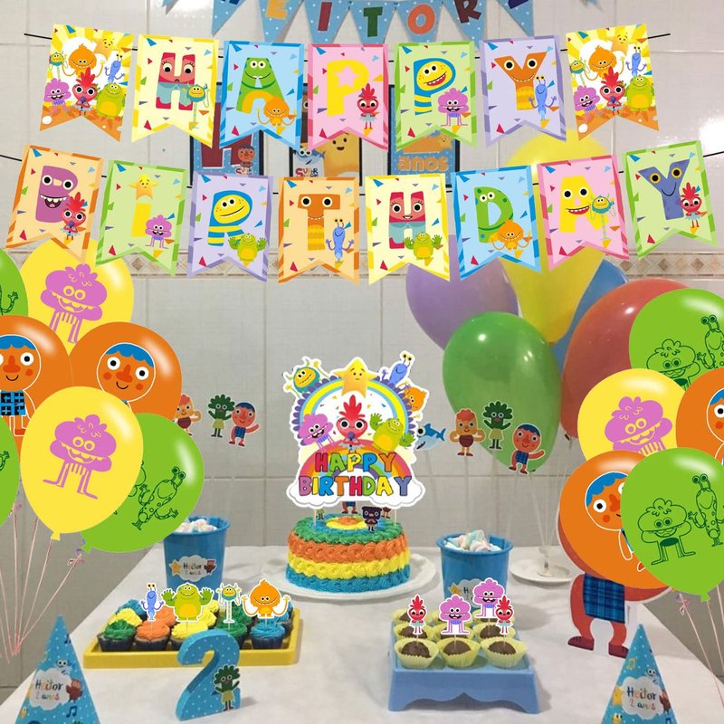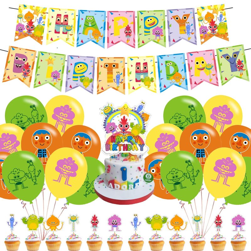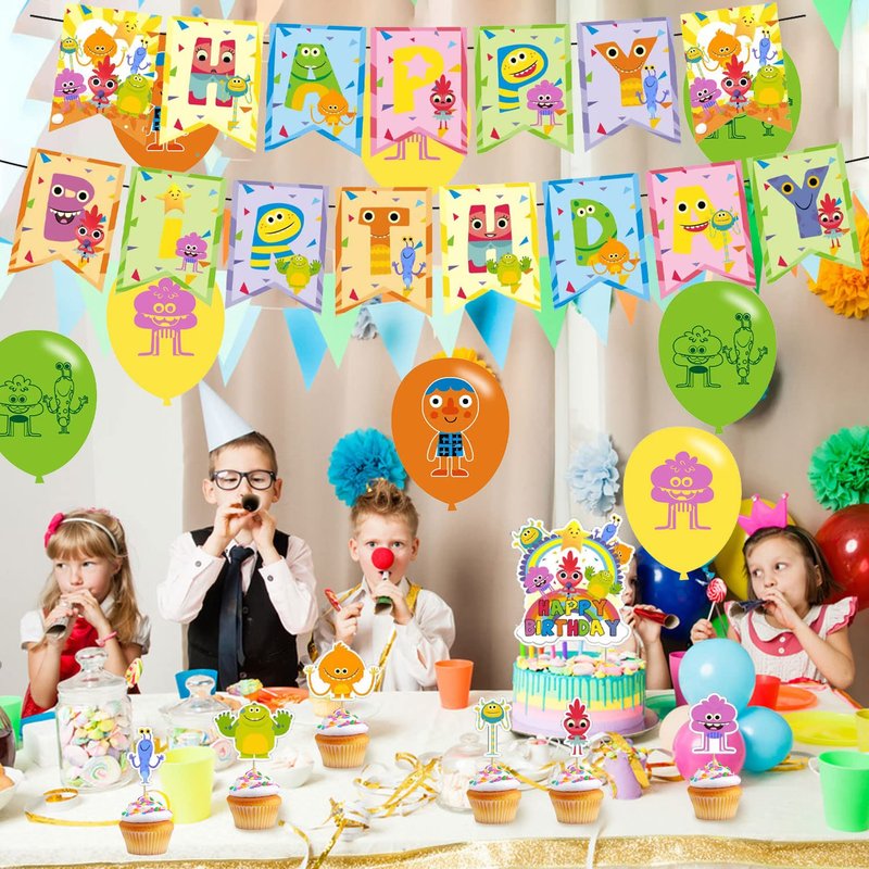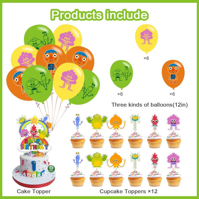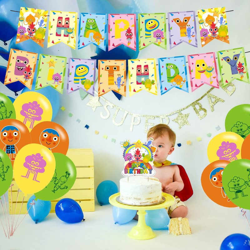 Super Simple Songs Party Supplies, Bundle of 33 Kids Monster Songs Themed Party Decorations Set includes happy birthday banner, cake topper, birthday balloons for kids birthday decorations Convenient and easy to assemble, save time!