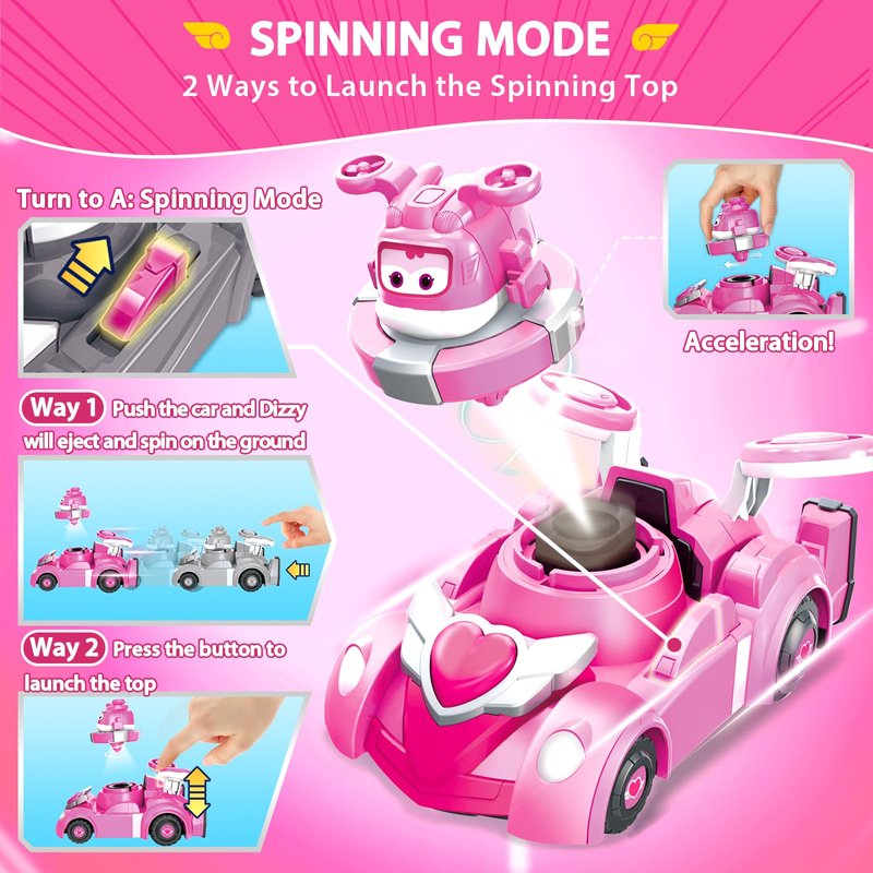 Super Wings Race Car Toys, 5 in Dizzy Spinning Tops and Race Car Toys for Kids, 2-in-1 Mode Vehicle Toys Cars for 3 4 5 6 7 8 Year Old Boys