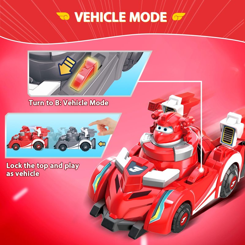 Super Wings Race Car Toys, 5 in Jett Spinning Tops and Race Car Toys for Kids, 2-in-1 Mode Vehicle Toys Cars for 3 4 5 6 7 8 Year Old Boys