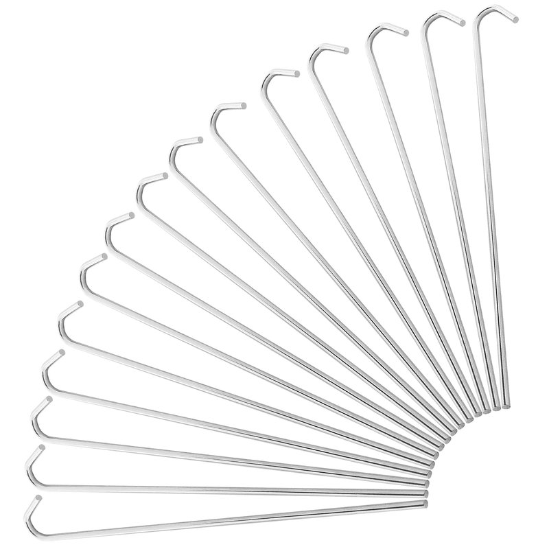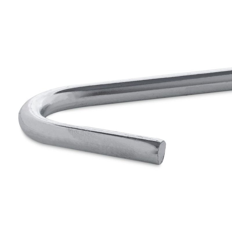 Multipurpose steel pegs that are perfect for anchoring tents, tarps, and canopies at ground level. Could also be used for landscaping or setting up garden decorations and keep them from falling over. These galvanized steel stakes are also an ideal for outdoor camping and hiking. Anchor a tent with these stakes and you are guaranteed a stable shelter. Strong, durable garden securing pegs and built to last for years to come. The hook prevents the stake from going too deep and unseen. Each steel stake measures at 9" inches long for extra security when anchoring your items. 4mm diameter heavy duty steel rod with galvanized finish for superior rust-resistance in outdoor weather.