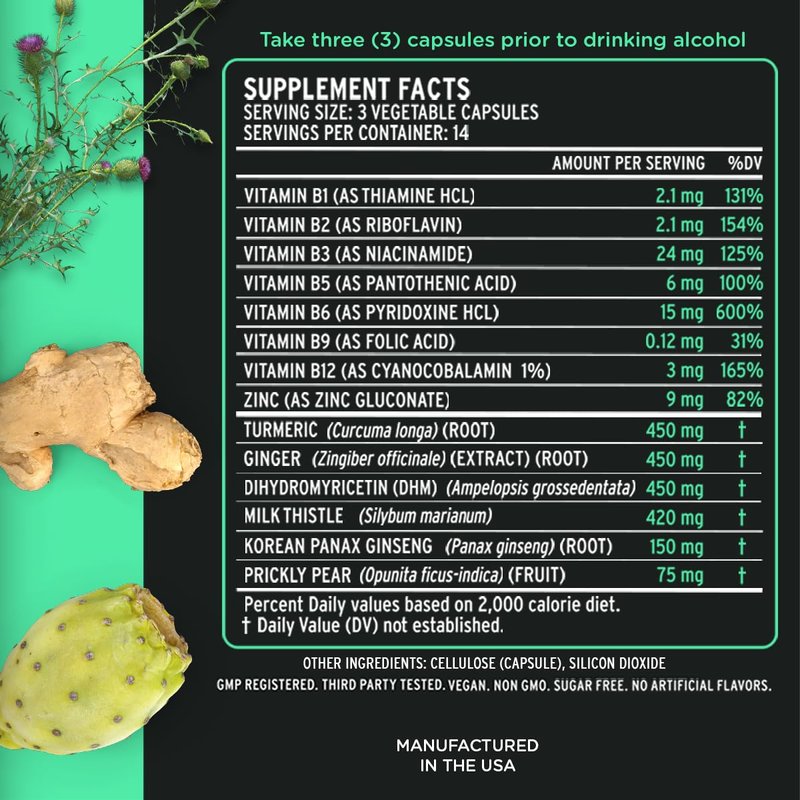 - EASY & CONVENIENT DOSING - Designed for your busy lifestyle, our capsules offer targeted support in an easy-to-take form. Just take 3 capsules before drinking and an optional serving after drinking. Get more out of your weekends and negate the bad side effects often associated with drinking with one easy-to-take supplement.