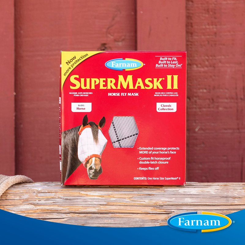 - HELPS HEALING after eye injuries without obstructing horse’s vision. SuperMask II horse fly mask features a see-through mesh designed to keep flies, dust, dirt and debris away from your horse’s face