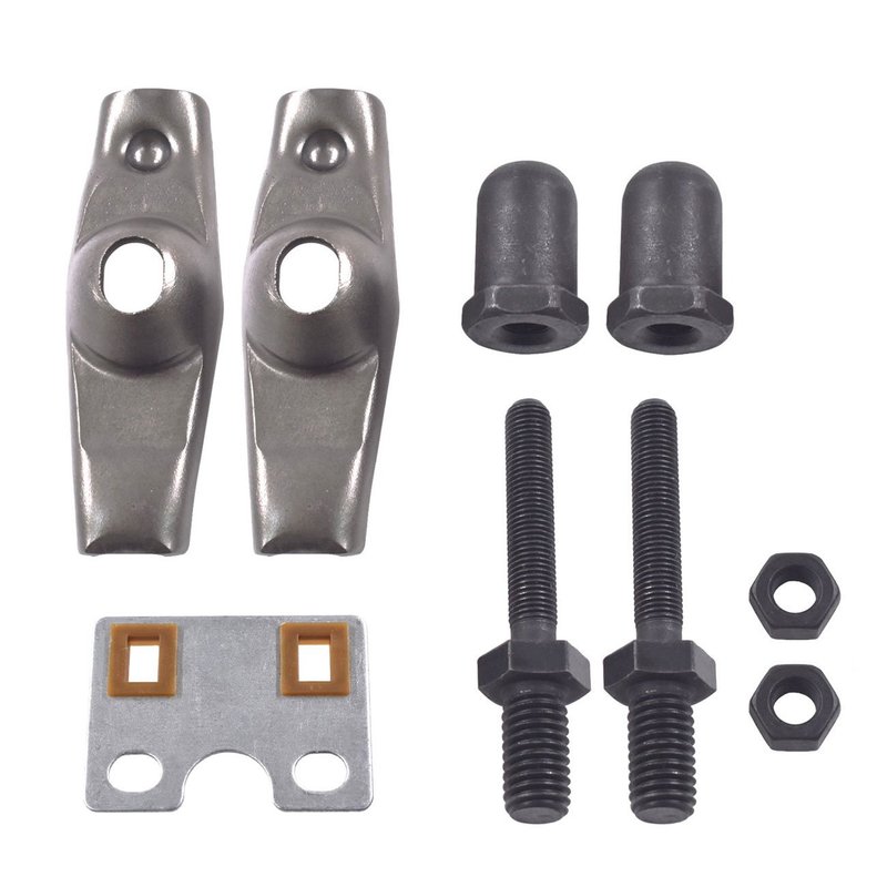 Package Include:1 x Push Rod Guide Plate, 2 x Rocker Arm, 2 x Rocker Arm Pivot, 2 x Studs, 2 x Nuts