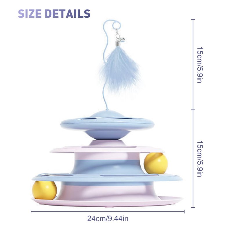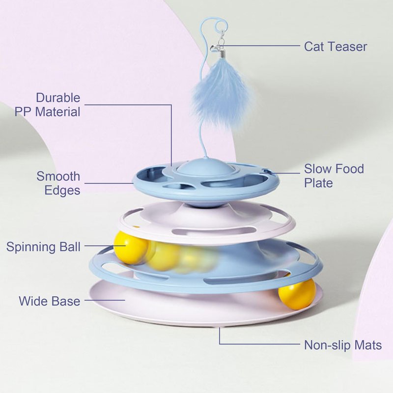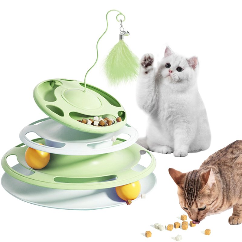 2 In 1 Cat Interactive Toy Roller 3-Level Turntable Cat Toy Cat Slow Feeder Food Dispenser Cat Kitten Wand