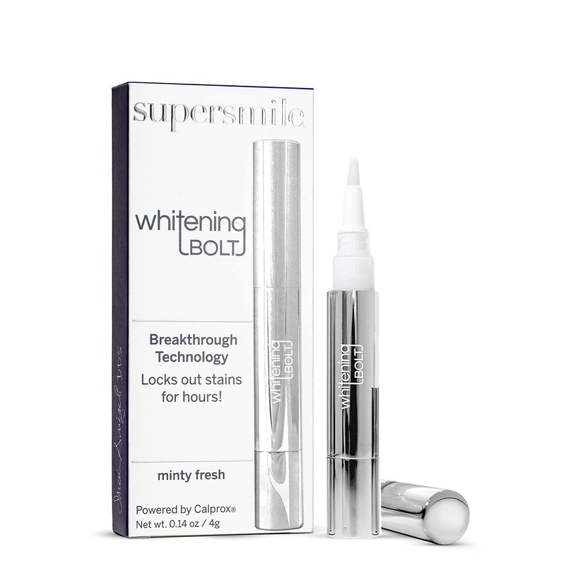 - Instant Stain Blocking Pen - Supersmile's Whitening Bolt is designed to blocks stains before they start. The Bolt works efficiently to prevent stains from coffee, tea, wine, tobacco, juice, and berries, giving you a brighter, whiter smile in no time