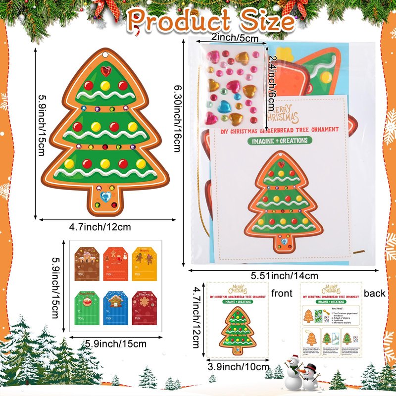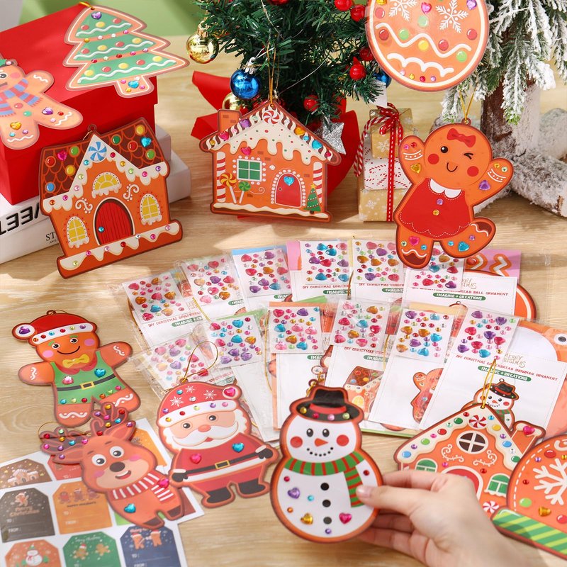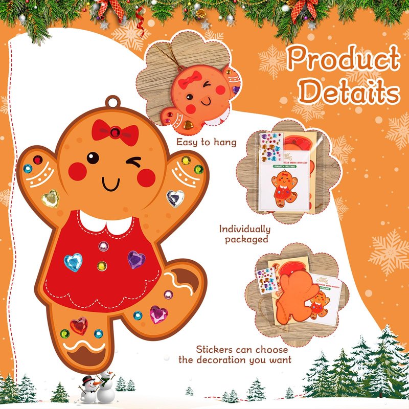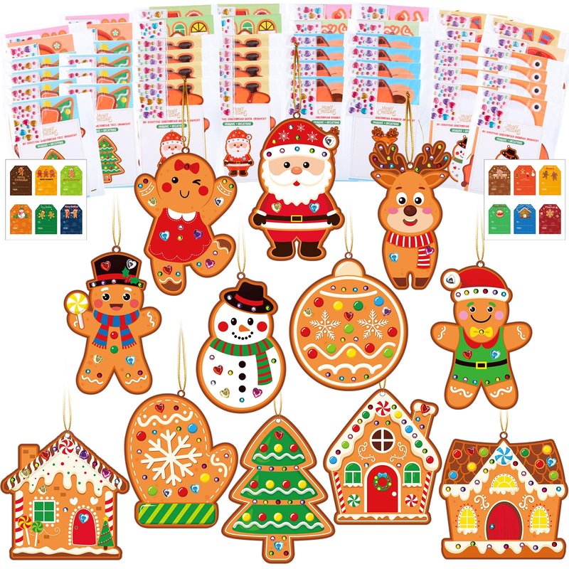Supervitae 24 Sets Christmas Craft Kits DIY Christmas Tree Ornament Decorations Art Sets Santa Snowman Gingerbread Crafts Stickers for Holiday Xmas Home Classroom Activities Party Favors(Gingerbread)
