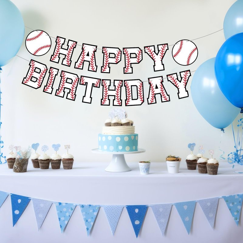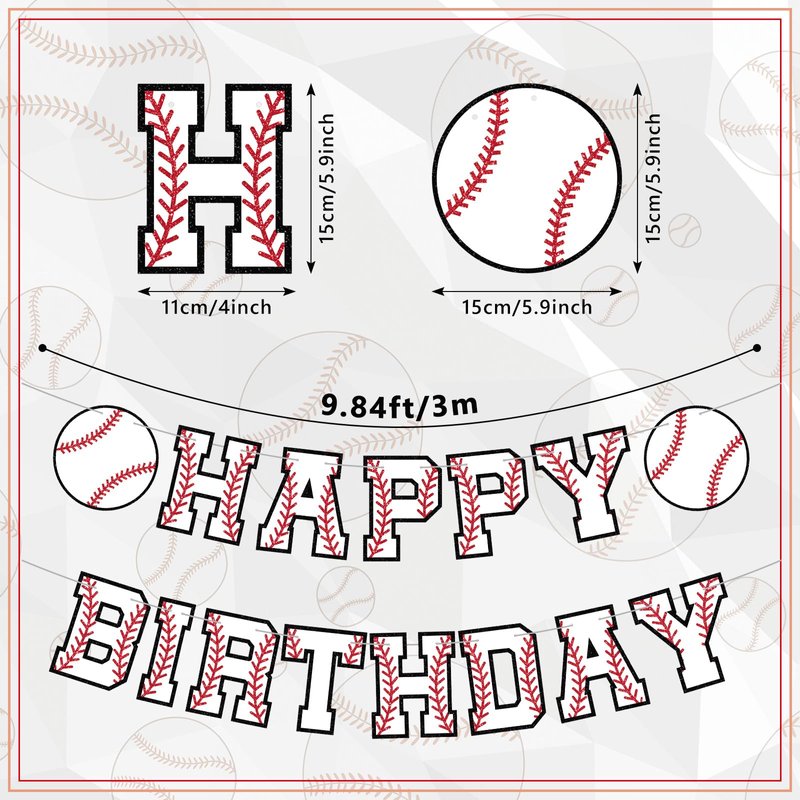 - Celebrate with Baseball Birthday Banners: make your baseball themed birthday party unforgettable with our baseball themed birthday banners (13 pcs HAPPY BIRTHDAY + 2 baseballs), including 2 9.8ft white ribbons and a plastic needle for quick threading