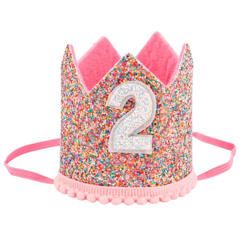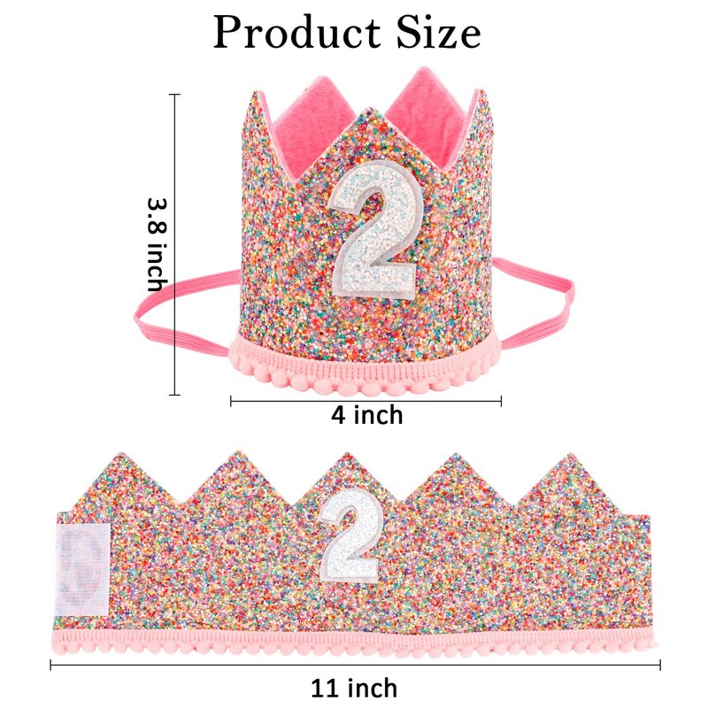 SuPoo 2nd Birthday Decorations for Girl Sprinkle 2nd Birthday Hat Headband Glitter Birthday Crown for Girls Princess Tiara with Elastic Band 2 Year Old Happy Birthday Party Cap Decorations Supplies