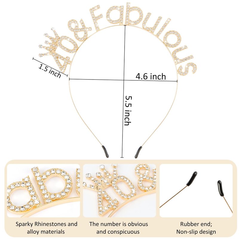 SuPoo 40th Birthday Decorations Women 40th Birthday Crown Gold Diamond Birthday Headband 40th Birthday Gifts for Her 40 and Fabulous Party Decorations 40 Year Old Happy Birthday Tiara Hair Accessories