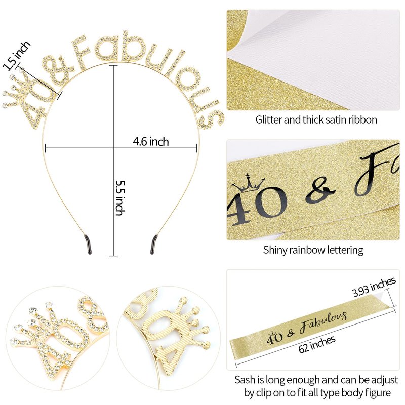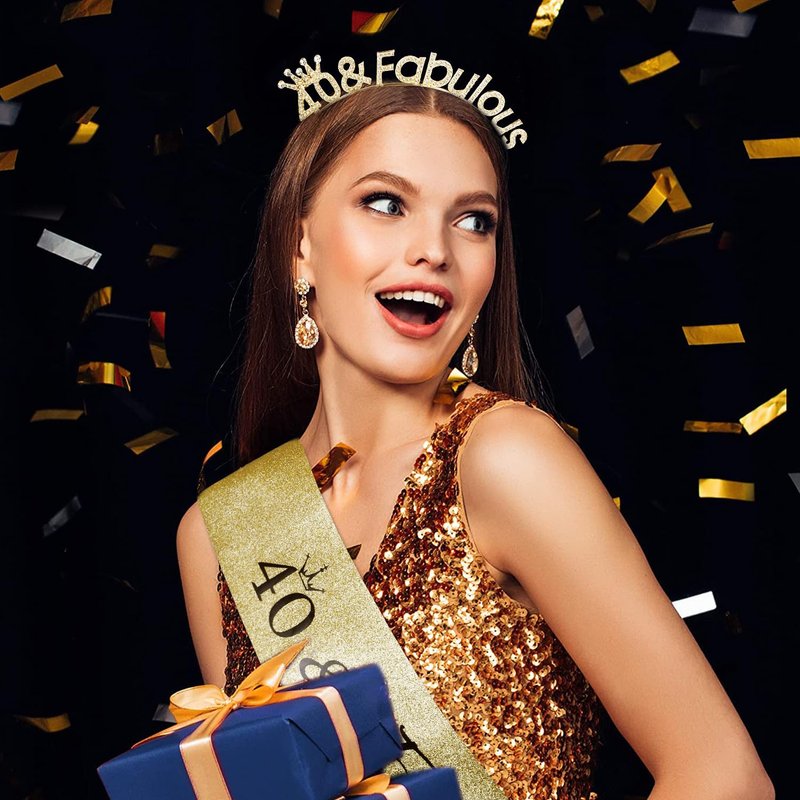 SuPoo 40th Birthday Sash and Crown Set 40th Birthday Decorations for Women 40th Birthday Crown Headband 40th Birthday Gifts for Her 40 and Fabulous Party Decorations 40 Year Old Happy Birthday Tiara