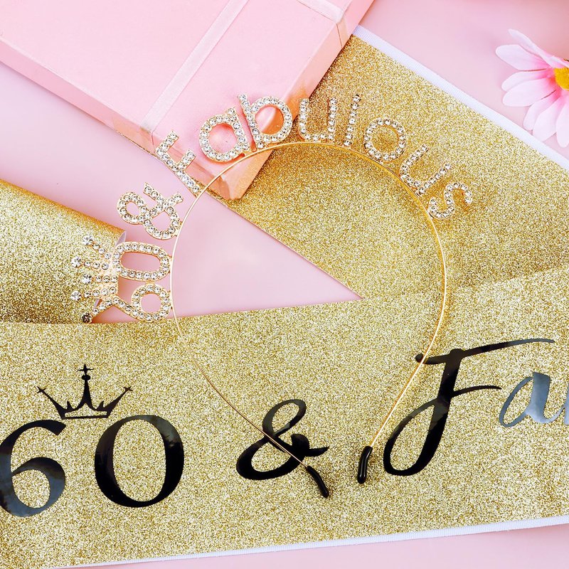 sixty and fabulous birthday decorations for women 60 and fabulous sash 60s party decorations 60th birthday tiara Rhinestone Happy Birthday Accessories birthday sash for women 60 year old woman birthday gift ideas