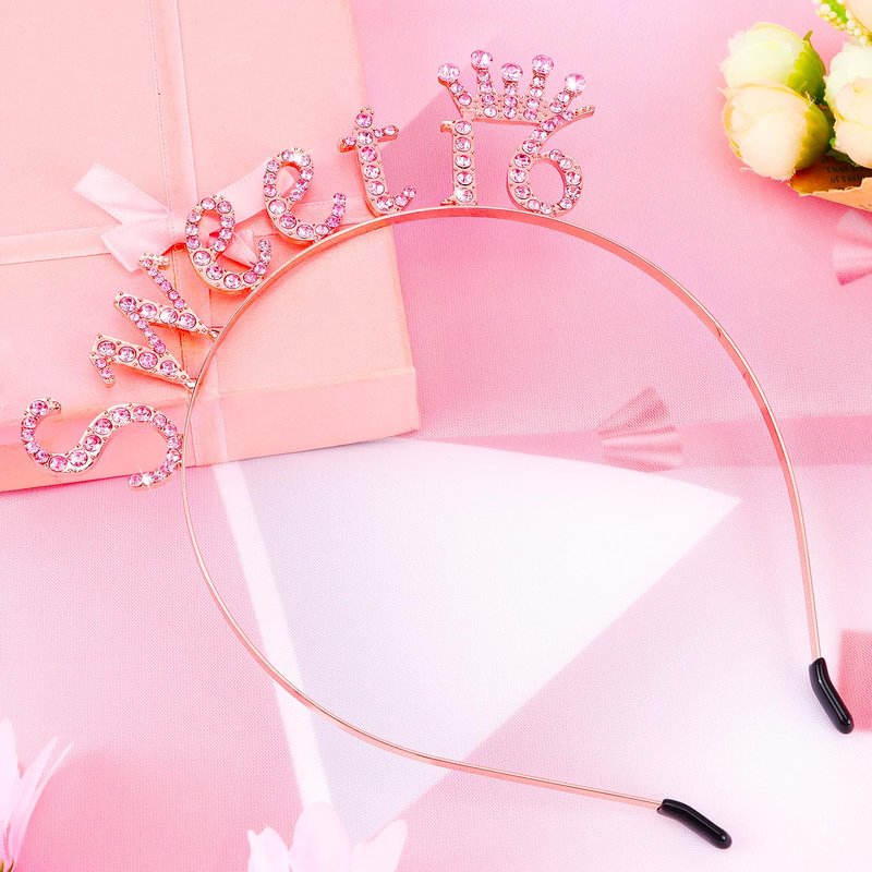 SuPoo Pink Sweet 16 Headband 16th Birthday Crown Birthday Decorations for Girls Shiny Rhinestone Birthday Tiara Princess Crown Sweet Sixteen Party Decorations Party Favors
