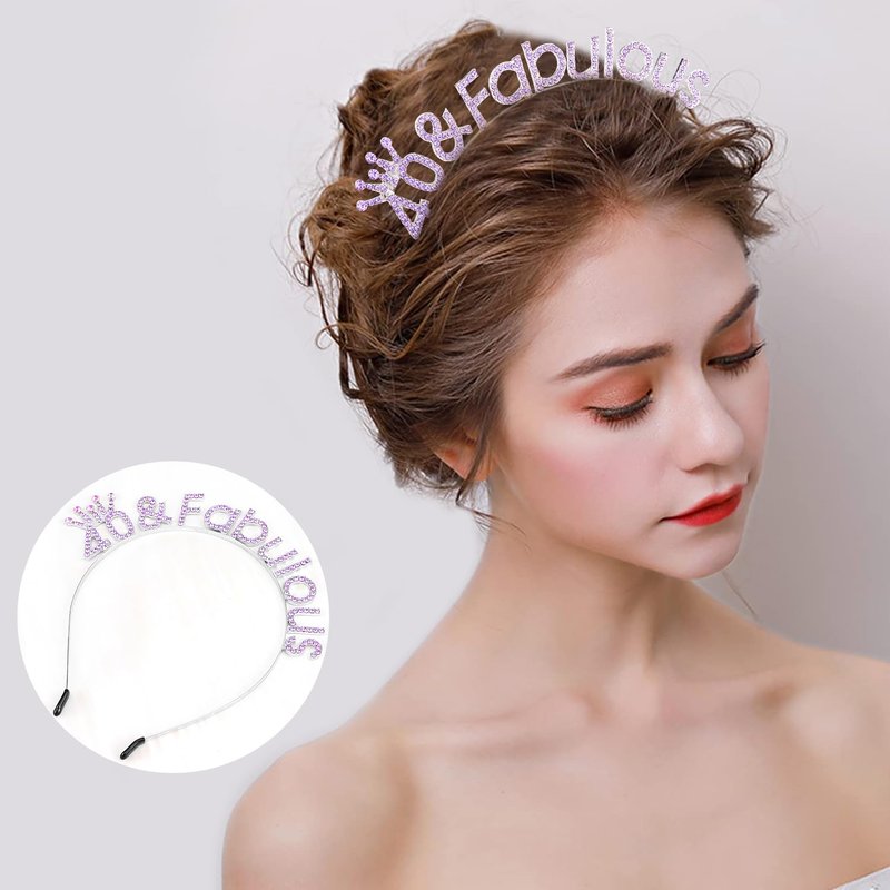 SuPoo Purple 40th Birthday Crown Headband 40th Birthday Decorations Women 40 & Fabulous Birthday Tiara Headband 40 Birthday Gifts for Her 40 Year Old Party Decorations Happy Birthday Hair Accessories