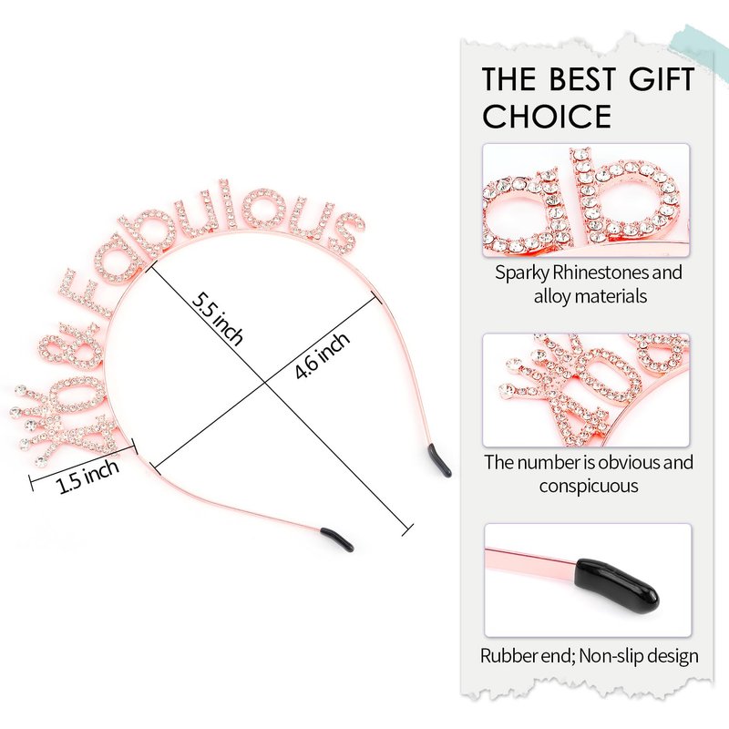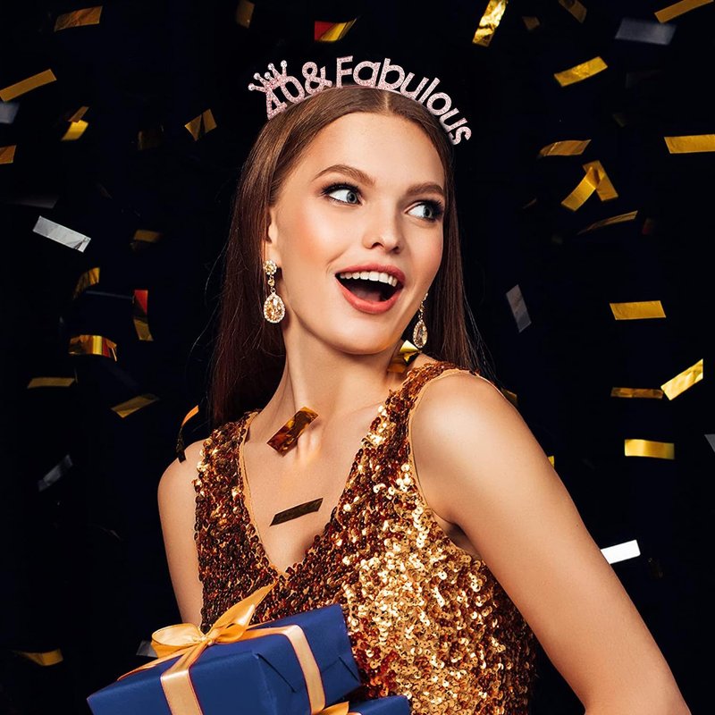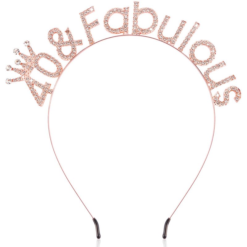 SuPoo Rose Gold 40th Birthday Crown Headband 40th Birthday Decorations Women 40 & Fabulous Birthday Tiara 40 Birthday Gifts for Her 40 Year Old Party Decorations Happy Birthday Hair Accessories