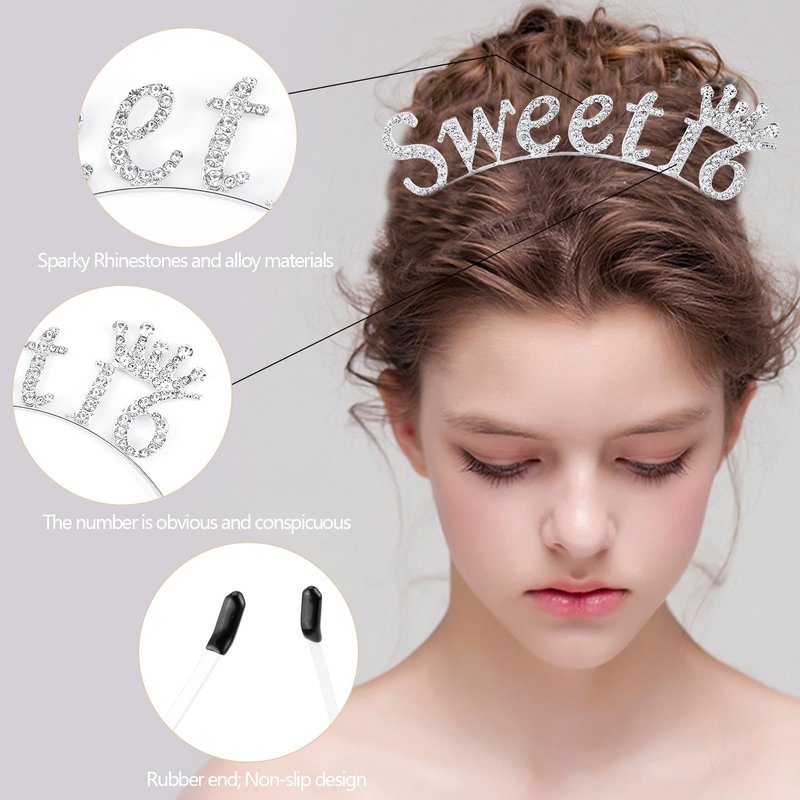 SuPoo Silver 16th Birthday Crown and Sash Sweet 16 Tiara Headband 16th Birthday Decorations for Girls Sweet 16 Sash Happy Sixteen Party Decorations Party Favors Birthday Girl Headband