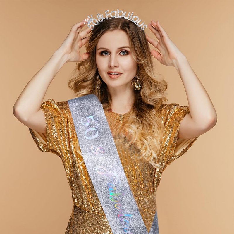 fifty and fabulous birthday decorations for women 50 and fabulous sash 50s party decorations happy 50th birthday decorations 50th birthday tiara Rhinestone Happy Birthday Accessories birthday sash for women 50 year old woman birthday gift ideas