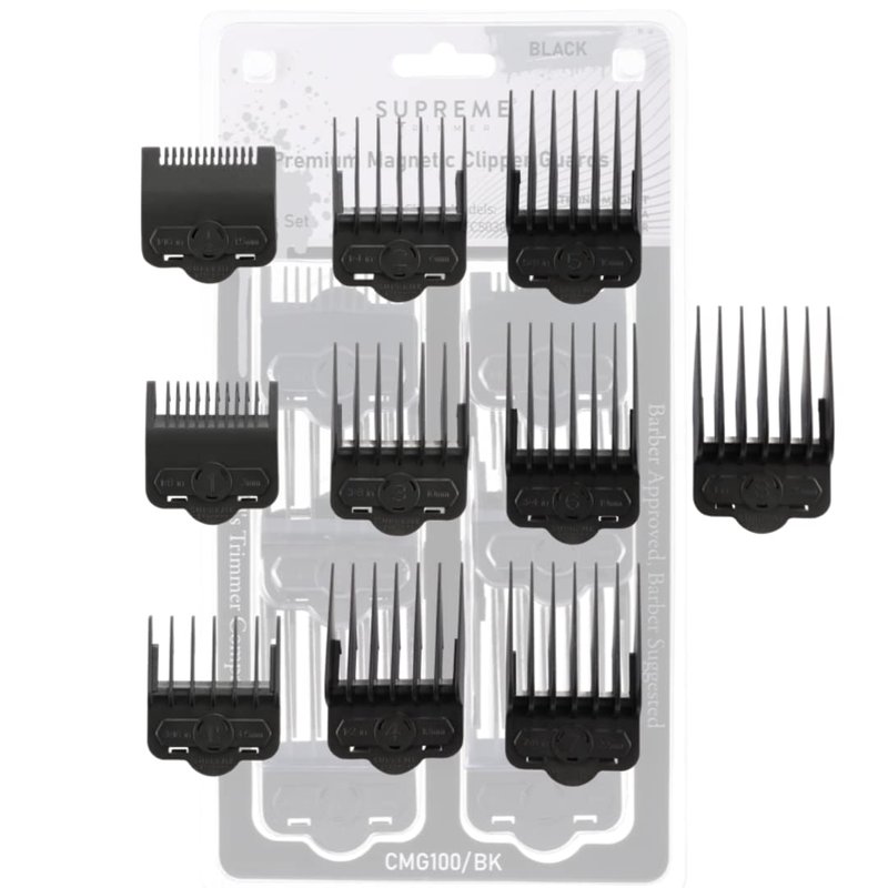 Supreme Trimmer Magnetic Guide Combs for Clippers | CMG100 Hair Clipper Guards, 10 Cutting Lengths | Black