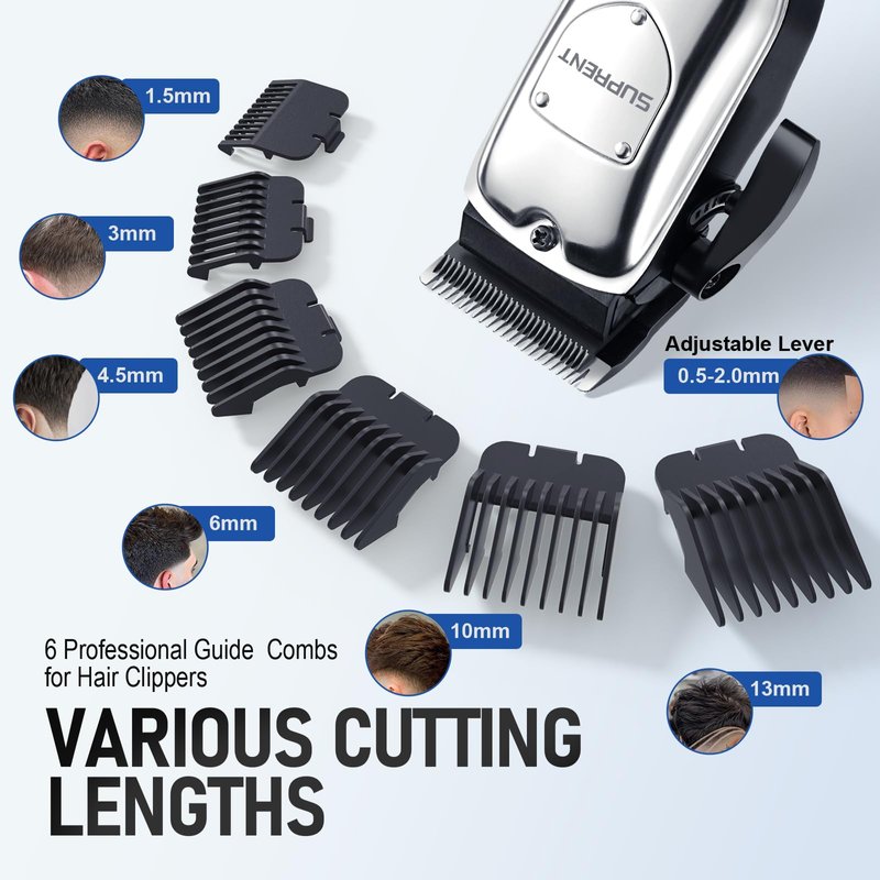 - 【Precision Cutting & Effortless Style】SUPRENT electric hair clipper boasts a powerful, yet whisper-quiet rotary motor that effortlessly cuts through thick hair. The precision-engineered blades are designed to glide smoothly through hair, preventing snags and ensuring a clean, precise cut.Whether you're an experienced barber or a novice home beautician, our hair clippers are designed to enhance your skills. Its ergonomic design and comfortable grip ensure long-lasting comfort during extended use. Our professional hair clipper is the perfect gift for man who values quality and performance.