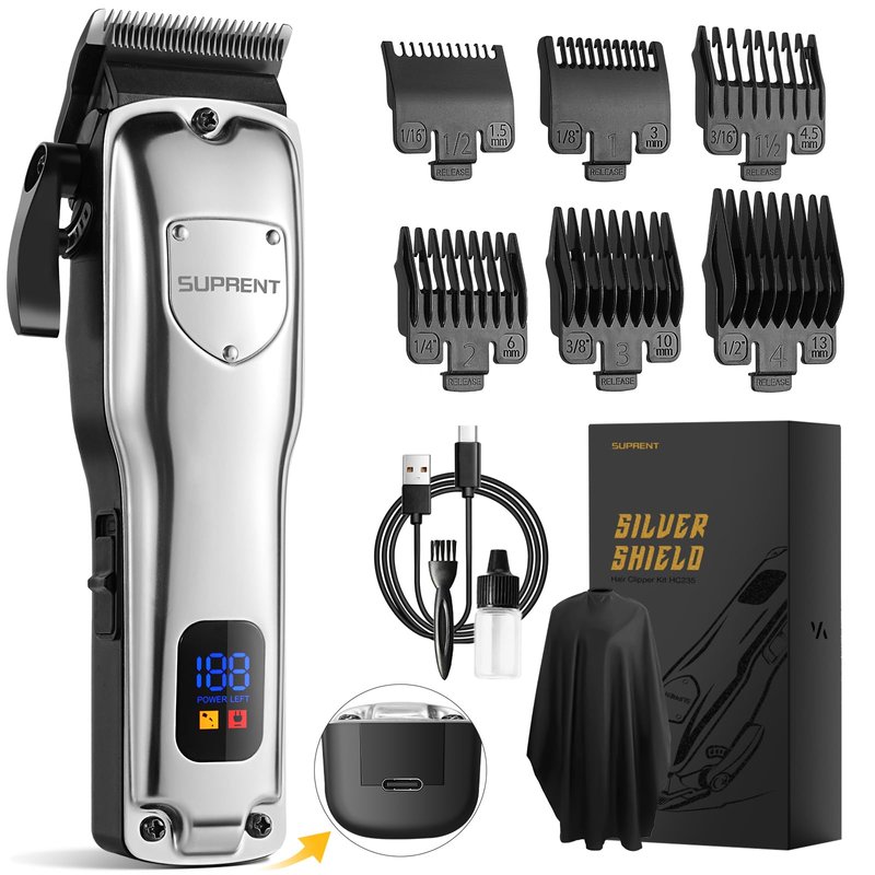 SUPRENT Hair Clippers for Men Professional, Cordless High-Performance Clippers for Hair Cutting, USB-C Rechargeable Mens Hair Clippers with LED Display Trimmer for Barbers & Home Haircut Use