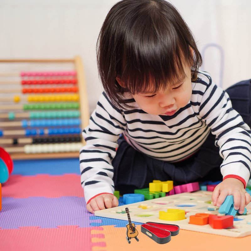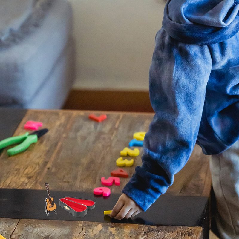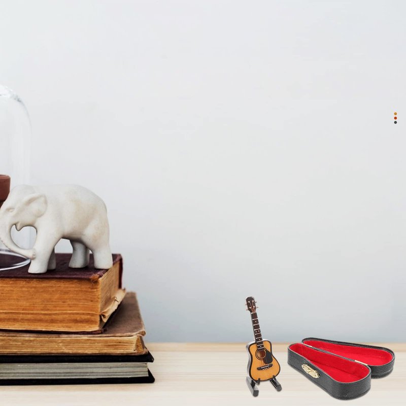 - Miniature Wooden Guitar Model Dollhouse Musical Instrument Display with Stand Support and Case Dollhouse Accessories Small Craft Ornaments Adorable Guitar Design Make It More Attractive and Will a Pleasant Atmosphere to Your Desktop Ornament