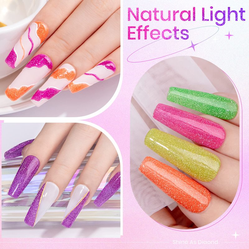 - 💛【What You Get】12 different colors Fluorescent Reflective Gel Polish with gifts box, 7ML(0.24fl oz) each bottle.
