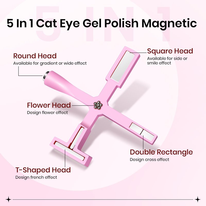 - 【5 in1 Cat Eye Magnetic Stick】Achieve flawless and mesmerizing cat-eye effects with our 5 in1 Cat Eye Magnetic Stick. With five different magnetic heads, this versatile tool allows you to create various styles effortlessly. Whether you're a nail enthusiast or a pro nail artist, this tool is perfect for you