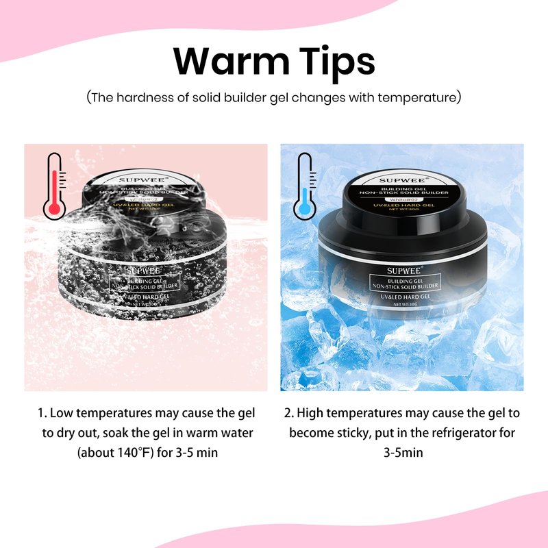 - 【Upgrade Formulas】SUPWEE Solid 3D Hard Gel is formulated to be non-sticky, ensuring easy application and smooth sculpting. Say goodbye to messy and frustrating experiences, and hello to effortless nail art creations