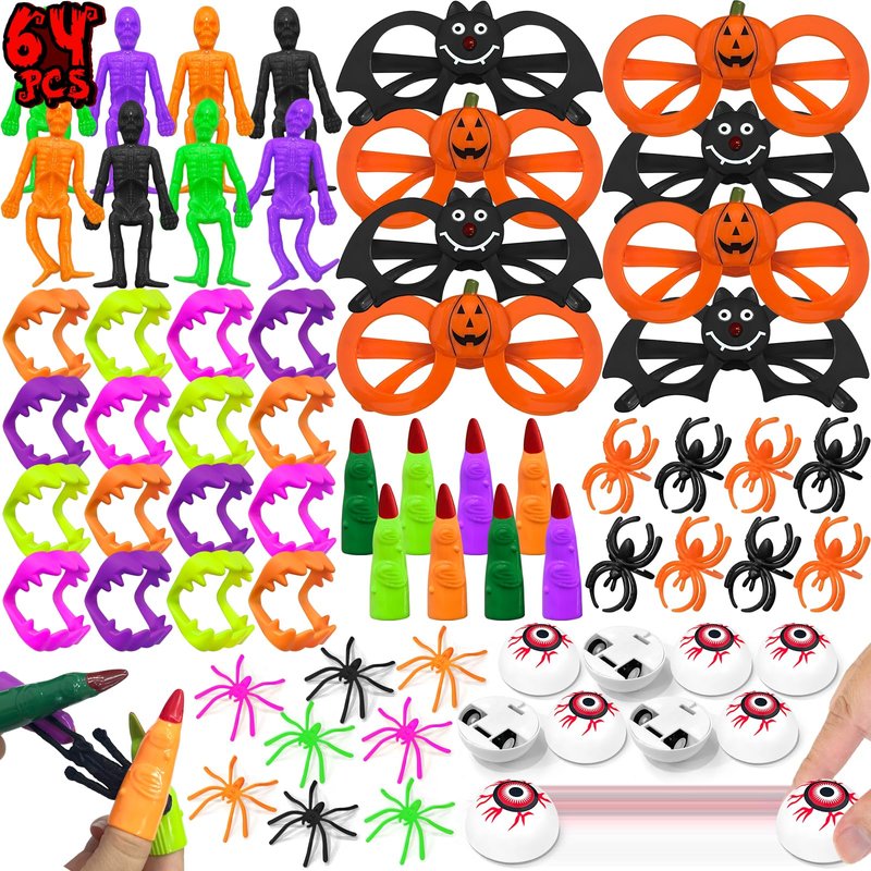 SURCVIO 64 Pack Halloween Party Favors for Kids, Halloween Toys Gifts Bulk Classroom Rewards, Halloween Party Supplies Trick or Treat