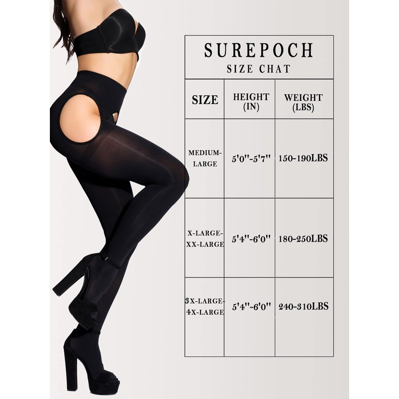 SUREPOCH specializes in designing comfortable and durable socks for women. Elegant opaque suspender tights have a stunning cut-out style that makes these look like suspender belts and stockings. The smooth, flexible nylon fabric offers an all-day, comfortable fit that is reliable and stays in place. Within 30 days, you can return or exchange the merchandise if you're unsatisfied. If you have any questions, get in touch with us, and we'll respond to you within a day!