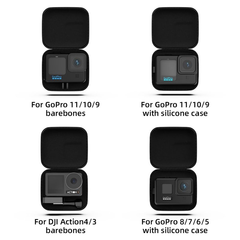 The size of this portable case has been repeatedly tested and finalized by us, making it suitable for most cameras on the market. And after verification, starting from the gopro hero 5, it is very suitable for gopro 6/7/8/9 black, dji osmo action and other action cameras.