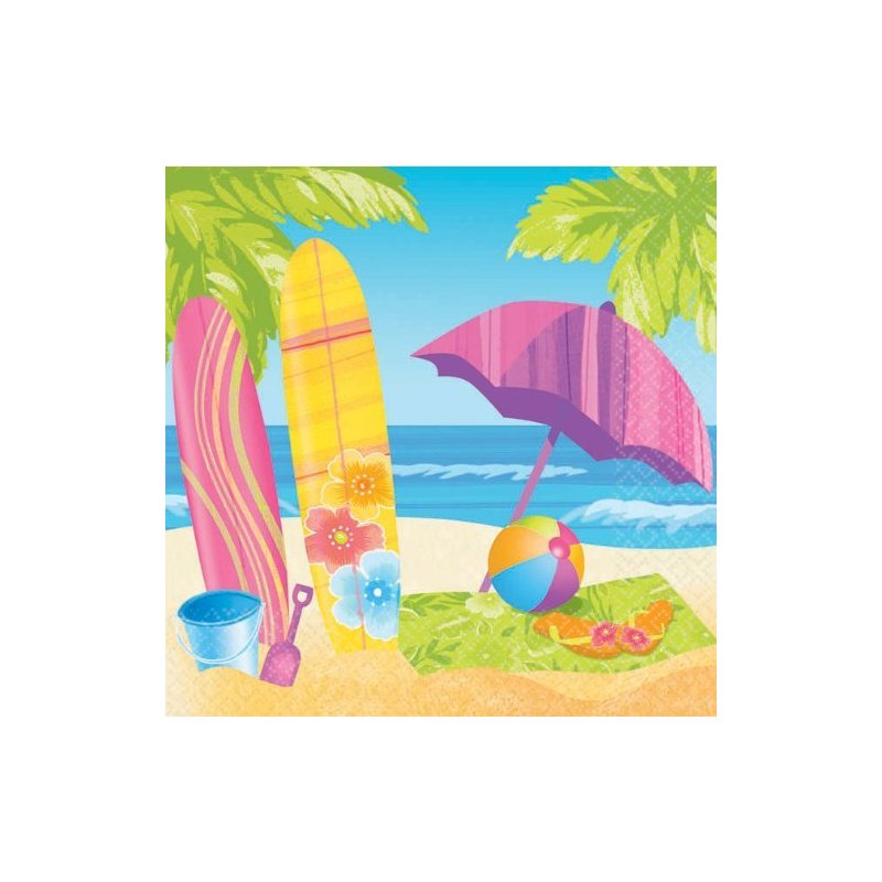 Catch some big waves with this Surf's Up paper ware ensemble. Surf boards, waves and palm trees fill this ensemble with lots of luau fun. 16 per package.