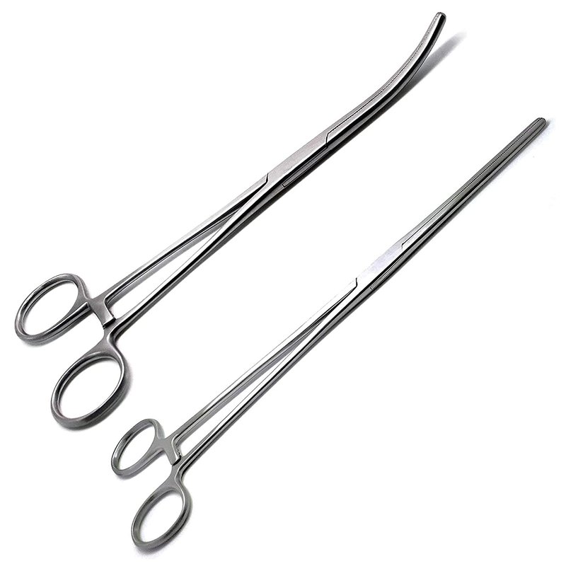 SURGICAL ONLINE Set of 2 Premium Quality 10" Rochester Pean Hemostat Forceps Straight & Curved Clamps Three Locking Positions - SurgicalOnline