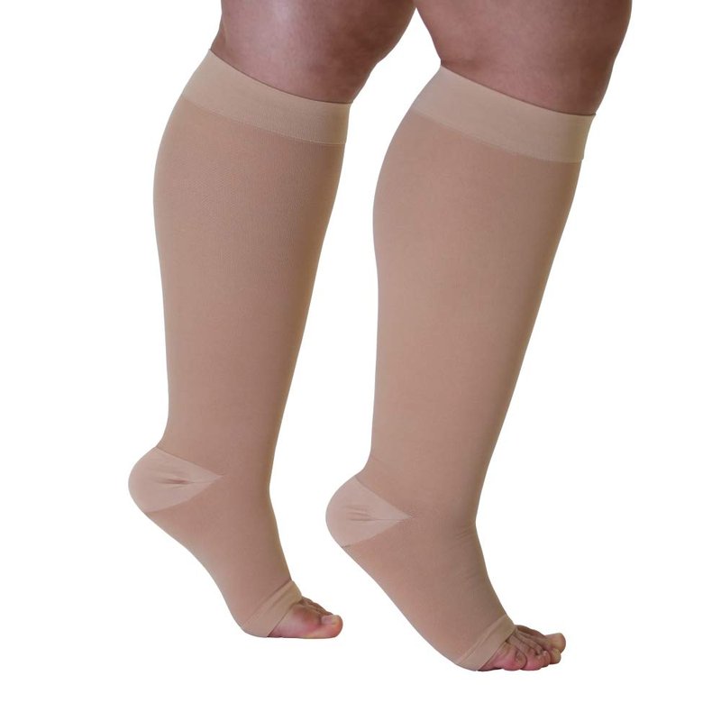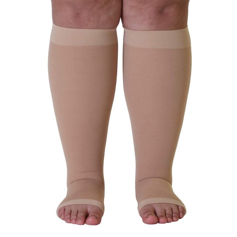Surgical Opaque Knee-Hi Firm Support Open Toe 20-30mmHg Graduated compression Surgical Weight -- Made in USA (2XL, Beige) by Mojo Compression socks